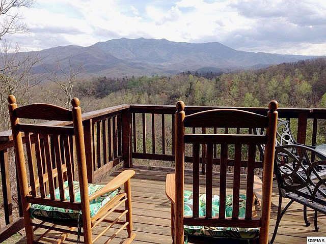 VIEWS, VIEWS, VIEWS! Newly Decorated with Luxury and charm. Two master bedroom suites each with king size bed, cable TV, gas log see-through fireplaces, large 2 person jacuzzi with spectacular views. The living dining area has a large mountain stone gas log fireplace, cable TV. Has dishwasher, microwave, washer/dryer. Fully equiped kitchen w/ granite counter tops. Has matching dishes, pots and pans, and utensils. The large, partially covered deck has a new hot tub with all the bells and whistles (including a waterfall in one corner), charcoal grill, and patio furniture plus rocking chairs. Wonderful investment, second home or permanent residence. Seller owns the propane tank and it conveys