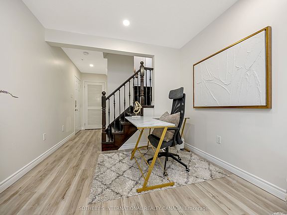 Welcome to this Mattamy Springdale model offering 1,357 sq. ft. of thoughtfully designed living space in a prime central location. The beautifully updated kitchen features quartz counters and backsplash, crisp white cabinetry, and stainless steel appliances, all complemented by refinished stairs, newer flooring and warm neutral tones throughout. A ground floor den makes an ideal home office, while open living and dining areas extend to a large west-facing deck, ideal for summer BBQ's and panoramic sunsets. Upstairs, the expansive primary bedroom features an upgraded 3-piece ensuite and walk-in closet. Steps to schools and parks, with shopping, transit, and highway access just minutes away. This home blends style, comfort, and convenience, a fantastic starter home or investment opportunity.