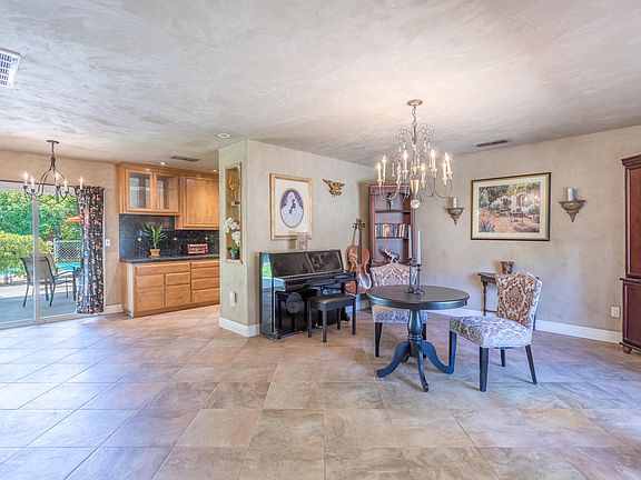ENJOY where you live! Stay cool in the POOL and/or enjoy the covered patio and privacy of the backyard.This lovely 3/2 spacious ranch style home is located on a cul-de-sac. Featuring both a living room and family room. The family room has a gaslite fireplace and opens to a private courtyard AND separate backyard patio/outdoor living space. Fabulous kitchen with granite counters and beautiful cabinetry, wine storage and even a dry bar! You will love the yoga/craft/office room. Large variety of established fruit trees and garden area. This delightful home is perfect for entertaining family and friends!