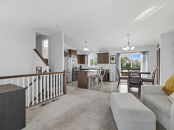 Welcome home! This 2018-built split-level offers modern style and thoughtful design throughout. The open-concept main floor features vaulted ceilings, durable LVP flooring, granite countertops, and stainless steel appliances. Enjoy 3 spacious bedrooms, including a primary suite with a private ensuite bath, plus one additional full bathroom. The fully finished lower level provides a large family room perfect for relaxing or entertaining. Outside, you’ll find a 12x18 deck overlooking the 0.33-acre lot, a large concrete driveway, and an insulated 3-car garage. Don't miss this move-in ready home!