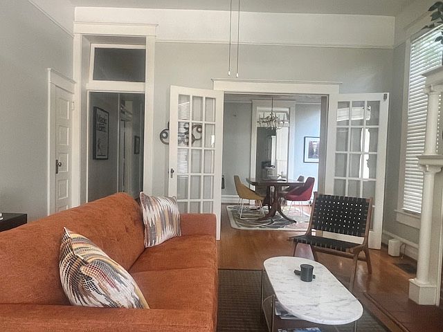 Downstairs unit in a classic duplex in historic Oakleigh District. Corner lot, across from six beautiful, newly built single family townhomes. Conveniently located near downtown, just a couple blocks from a main Mardi Gras route. Easy access to main thoroughfares. This first floor home is spacious, with a large living room, French doors leading to a formal dining room, full kitchen and charming kitchen nook with booth. Private entrance from front and back of apartment. There are hardwood floors throughout, except kitchen and bath. High ceilings, bright with lots of windows on all sides. Transom windows - over hallway, bedroom, dining room, and bath doors - give the place an elegant, old world charm. Private back porch. Parking in driveway. The apartment is furnished, with two bedrooms ( one with a king bed, the other a full size bed), a formal dining room area, kitchen utensils and dishes, and a living room with new furniture and a television. Available for monthly rental, at $2100/month. Available September 3rd through November 30th. Then unavailable for Dec/Jan/Feb. Happy to discuss other options. Furnished apartment available for month-to-month lease. Available September - November 2025. Currently NOT available December 2025 - February 2026 NO SMOKING IN ANY PART OF THE BUILDING.