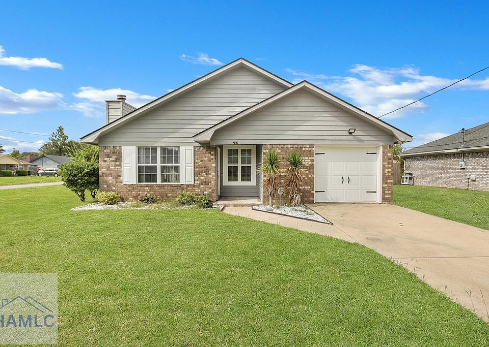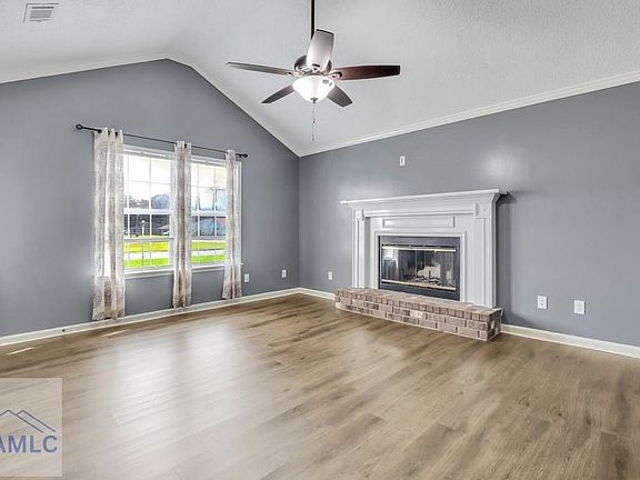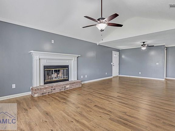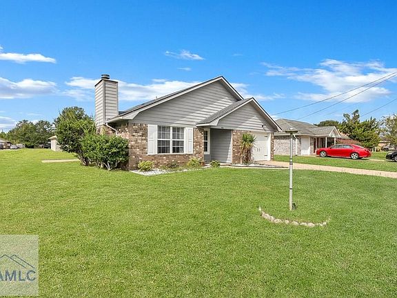 Charming 3 bedroom2 bath brick home situated on a large corner lot . Features include Beautiful wood laminate flooring, Spacious living room with vaulted ceiling and wood burning fireplace leading into kitchen with dining area walk-in-pantry Master bedroom has walk in closet, single vanity in bathroom, 2 other nice size bedrooms, and laundry room in hallway.The backyard has a patio, full irrigation system on a separate well to maintain lawn.Newer HVAC and roof, single car garage, Huge corner lot . this home is close to shopping areas and gates to Ft Stewart. Don't miss out on this one!