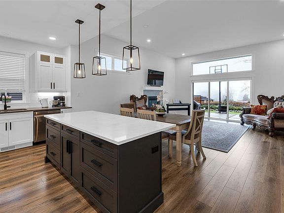 Welcome to this beautifully designed modern rancher, offering over 1400 square feet of single-level living paired with breathtaking views of the ocean and surrounding mountains. Built in 2021, this home combines style, comfort, and peace of mind with no GST! Step inside and be greeted by soaring 11-foot ceilings and expansive south-facing windows that fill the home with natural light throughout the day. The open-concept layout with a cozy gas fireplace, seamlessly flowing into a chef-inspired kitchen featuring stainless steel appliances, quartz countertops, and a spacious island ideal for gatherings. The primary suite is thoughtfully positioned to maximize the view and features a spa-like ensuite with heated tile floors, a walk-in shower, and a custom walk-in closet. Two additional rooms offer flexibility. Outside, enjoy a private, low-maintenance yard and backing onto a peaceful green space and nearby dog park. This is easy, elegant living in a setting you'll love to call home.