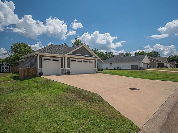 To schedule a private showing or arrange a buyer’s agent tour, please contact Dustin at 417-437-152. Seller is willing to work with buyer’s agents and will cover 2% of the buyer’s agent cost, up to $8,000. Welcome to this beautifully maintained 2,196 sq. ft. Craftsman-style home, perfectly situated in the highly sought-after Dogwood Trails neighborhood within the Carl Junction school district. The exterior shines with curb appeal, featuring an in-ground sprinkler system, 10’ x 16’ lofted shed custom-painted to match the home, and a stained privacy fence with no back neighbors. Enjoy outdoor living with both covered and uncovered concrete patios plus a 390 sq. ft. custom shaded mulch pit, perfect for entertaining or relaxing. Inside, modern finishes set this home apart, including granite countertops, luxury vinyl flooring, and a custom walk-in shower. The spacious master suite offers an oversized bedroom, spa-like bath, and an expansive walk-in closet. With four bedrooms, two and a half baths, and open living areas, this home blends comfort and functionality for the whole family. Additional highlights include a sought-after three-car garage and a whole-home water softener system for convenience and added value. Meticulously maintained and truly move-in ready, this home presents an exceptional opportunity to own in one of the Four States’ most desirable neighborhoods.