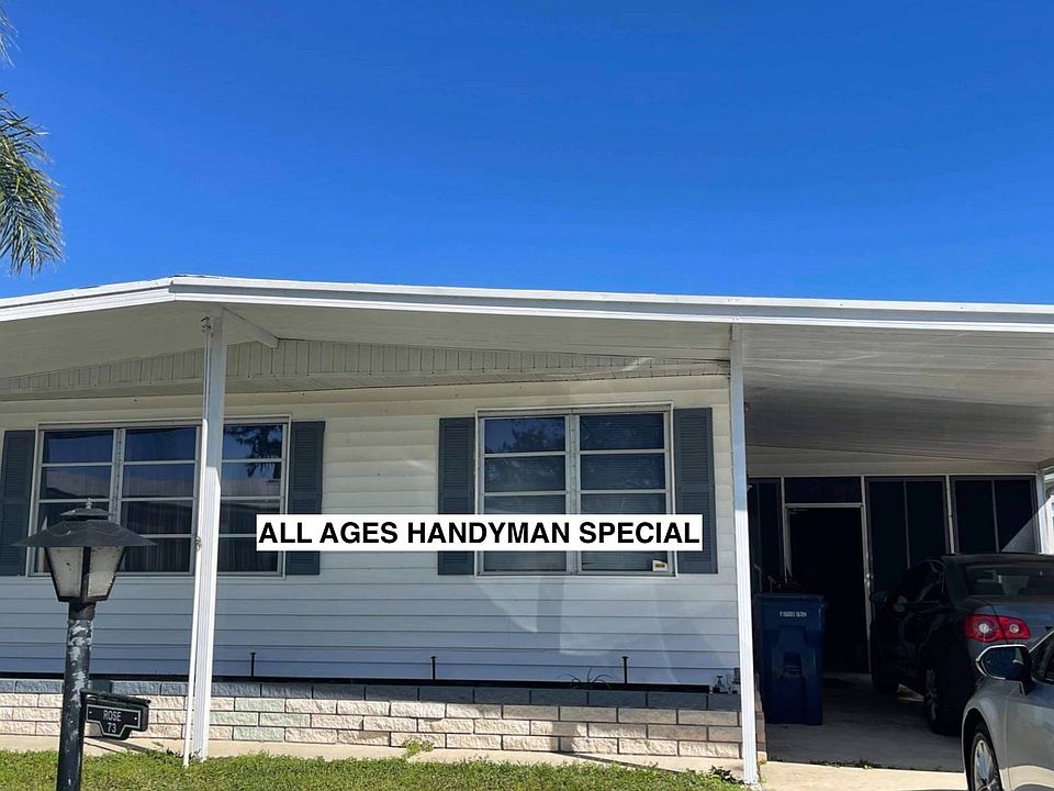 This mobile home is located in a resident owned co-op community on a rented/leased lot. There may be a share available for sale for additional cost of ~$30,000. This handyman special is a 3BR/2BA mobile home with over 1,400SF for living, dining and entertaining. There is a carport lanai and unfinished shed with plumbing. There is a driveway for parking 2 cars. There are some electrical upgrades and a 2014 A/C. There are laminate/vinyl and plywood floors throughout the living areas. The open kitchen has an island cook top, ample storage and 3/4" plywood flooring. The formal dining area and living area has laminate flooring. There is a separate laundry room/office. The master bedroom has panel walls and plywood flooring. The master bath en suite has a single sink vanity and a walk in shower. The other two bedrooms have plywood floors and a closet. The hall bathroom has a plywood floor, double sink vanity and a shower/tub combination. The lot rent is $440 and includes water, sewer, trash, lawn, basic cable and all the community amenities. Community amenities include a heated swimming pool, a horseshoe court, a pair of beach volleyball courts, tennis court and an outdoor basketball court. Anglers will find easy access to the banks of the Manatee River. Country Retreat is located 4 miles east of I-75 off Upper Manatee River Road, 50 miles south of Tampa, FL and 10 miles east of Ellenton Shopping Outlets. Anna Maria Island is 20 miles west. Bradenton is 13 miles west and Lakewood Ranch is 12 miles south. Both Bradenton and Lakewood Ranch are hosts to entertainment, dining and shopping. All listing information is deemed reliable but not guaranteed and should be independently verified through personal inspection by appropriate professionals. Florida MH Sales cannot guarantee or warrant the accuracy of this information, measurements or condition of any property. Measurements are approximate. Lot rent subject to change.
