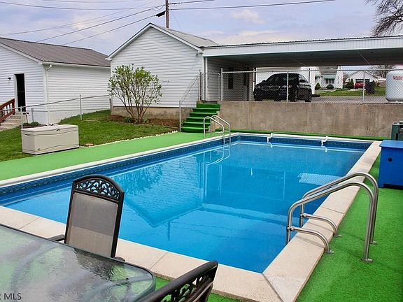 This is a completely updated brick home in Roaring Spring! The home is situated on the hill near the athletic field. The interior of the home features freshly painted walls, ceilings, and woodwork. The home has a newer (3-year-old) roof, new windows, and new flooring throughout. The kitchen has all new countertops, cherry cabinets, and includes appliances. There is a laundry room on the main level with included washer and dryer. The main level powder room has been completely remodeled as well. The second floor has 4 bedrooms and a remodeled full bath with a double bowl vanity. The third floor has a bonus room. Other property features include a fenced yard, inground pool with new liner, grilling and eating area on the pool level, and a detached garage and carport with alley access.