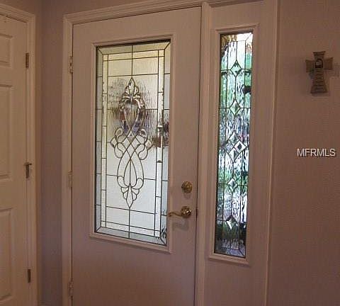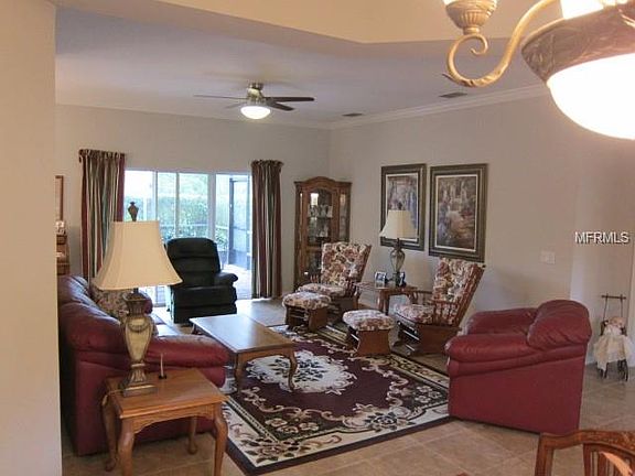 You will enjoy this quiet, peaceful neighborhood from your corner lot with a lush conservation area across the street ideal for strolling or biking. There is also a well maintained landscaped green space off the north side of the property. As you enter this popular Carnegie model through the beautiful Leaded Glass Entry Door, you are welcomed by a spacious open floor plan perfect for entertaining. The open kitchen has upgraded Cherry Cabinetry, Quartz Counters & a large breakfast bar. Crown Molding throughout the living areas. This home has a split bedroom floor plan offering both the master and guests privacy. The master bedroom and en-suite offers his/hers walk in closets. The master bath has a Jacuzzi Tub, Dual Vanities, plantation shutters and separate Walk-in Shower. The Florida Room/Den has a beautiful cherry wood cabinet that contains a murphy bed for your out of town guests. Enjoy your favorite morning beverage and a view of the water in your private extended Lanai. Solivita is a premier 55+ community. Solivita's 4,200 acres include two 18-hole championship golf courses, green wooded preserves, sparkling lakes,14 heated pools,2 state of the art fitness centers, community gardens, parks, walking paths, fishing ponds, tennis courts, basketball, softball courts, and more. The downtown village includes 3 restaurants, one of the two well-equipped Fitness Centers, library, Art Gallery, Pharmacy/Convenience Store, Ballroom, Ceramics Studio and more. Make Solivita your new home and lifestyle today.