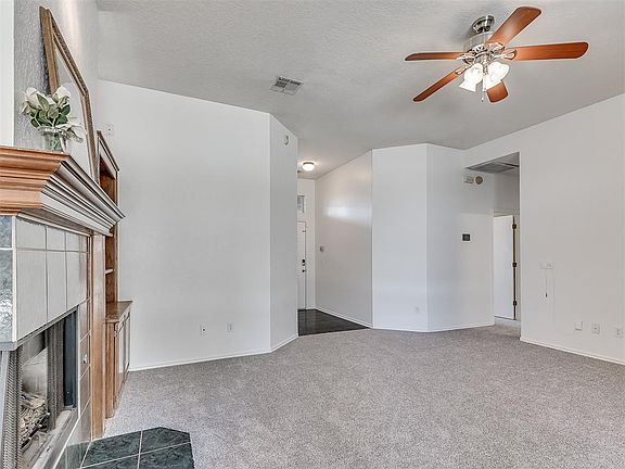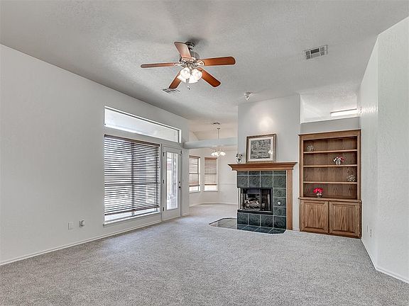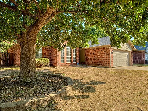 Absolutely precious 3 bed, 2 bath house in Eagle Cliff Addn. This adorable home is just filled to the brim with character and charm. The large living room features built-in bookshelves, a ceiling fan and a 2 sides fireplace which provides a seamless transition into around the corner and into the dining/kitchen area. The dining room is good sized with bay windows and tons of natural light. The open kitchen boasts a breakfast bar, full pantry, gas range, double ovens and the sellers are even leaving the refrigerator! The primary suite on the other side of the living area has its own patio door as well as a full bathroom with separate shower and soaking tub, double sinks, and walk-in closet. Your own little retreat at the end of the day. The secondary bedrooms and guest bath are at the front of the house, with both bedrooms offering plenty of closet space. Stepping into the backyard you will love the large covered patio and open deck with built-in seating. If you're looking for even more outdoor space, you'll find a public park just down the street. The Eagle Cliff park offers picnic tables, a playground, basketball courts and jogging/walking trails. On those questionable Oklahoma evenings, you'll be especially thankful for the added security of a 10 person storm shelter in the garage. The sellers have also recently installed a new LENNOX complete home comfort system with whole home ion cleaner and air filtration system, so that's another major expense that's already been handled. Additionally, there is new carpet throughout the house so it is completely move in ready. Come take a look and see for yourself!