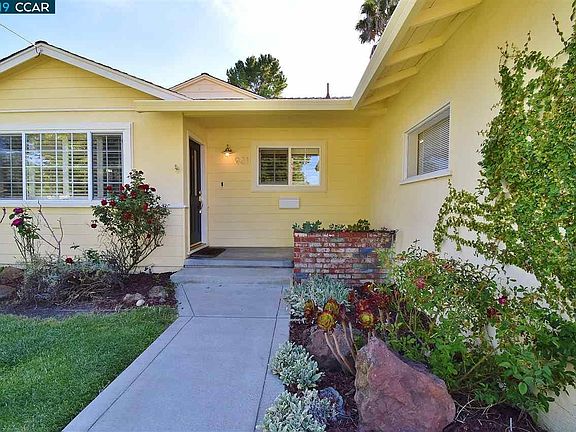 Idyllic setting on Walnut Creek border. Spacious and bright, this impeccable ranch style home on a cul-de-sac offers updates in every room! An upgraded granite kitchen featuring stainless appliances, travertine floors, Jenn Air gas range w/ double oven, breakfast bar and built in desk, provides the kitchen is as gourmet friendly as it is practical. Wood floors throughout, tile floors in baths. Large RV/Boat side access. Large corner lot with lush landscape, yards for play, storage shed and truly an entertainers delight with expansive patio too. Gardeners will love this home as the roses, grapevines and the many other plant varieties, attract a myriad of birds and butterflies. Simply a charming, peaceful, happy home. Workbench & storage in roomy two car garage. Other details include recessed lighting, custom crown and base moldings, dual pane windows, two fireplaces, ceiling fans, plantation shutters and much more. Don't miss this one. Near park, BART, K-12 schools and shopping.