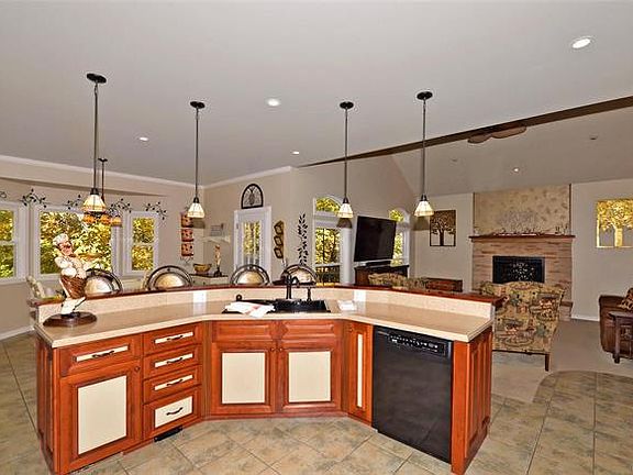 - RoomKitchenFeatures: Kitchen Island, Breakfast Bar, Eat-in Kitchen, Custom Cabinetry, Breakfast Room, Hearth Room, SolidSurfaceCounter