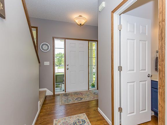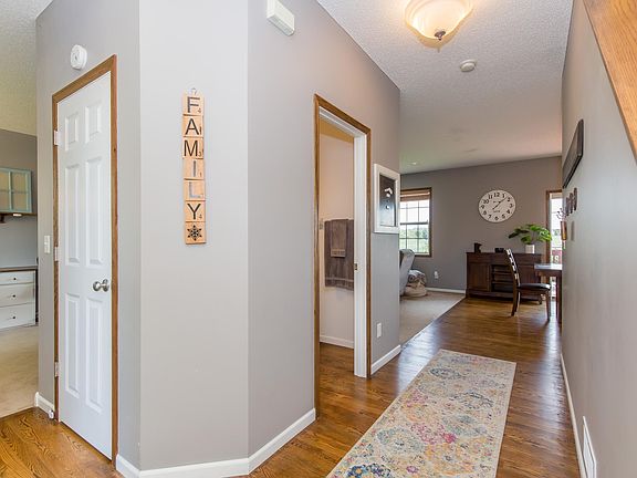 Great home in Bridle Creek Addition, 4 bedrooms on one level, full bathroom, large master w/ sitting area, private master bath w/ double sinks, whirlpool tub, large entryway, hardwood floors, nice kitchen w/ center island, granite counters, nice size living room off of dining room, main floor laundry. In the basement there is a 3/4 bath, family room w/ gas fireplace, entertainment/exercise area, 12 x 16 deck w/ stairs to private backyard, oversized 2-car garage, new roof August 2022, close to park.