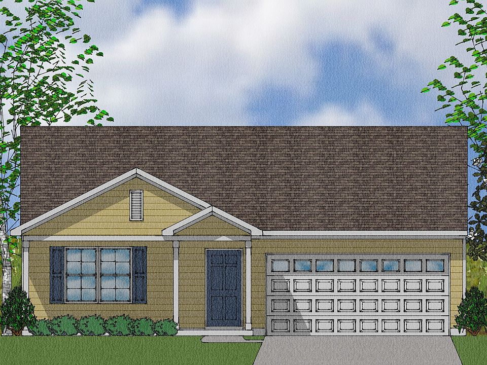 The Abbeville is a one-story that has three bedrooms, two baths, and a two-car garage. Kitchen with a center island, granite countertops, upgraded cabinets, stainless steel GE appliances, pantry and eat-in area. Vaulted ceilings in the family room with a gas fireplace. The master suite also offers vaulted ceilings, large walk-in closet and shower, and dual vanity sinks.