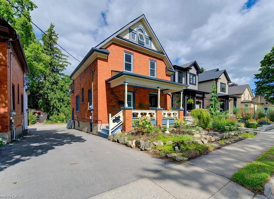This 2 storey charmer situated on a beautiful tree lined street is located in South Preston and walking distance to the downtown core, library and walking trails near the river. The main floor has hardwood flooring with large dining room, 2 pc bath and loads of the original wood trim throughout. The laundry has been conveniently located to the main floor with side door leading to the patio. On the upper floor you will find 3 bedrooms, an updated 4 piece bath and a fully finished upper loft level which could be extra space for home office or family room. There have been several great updates over the past few years including furnace and heat pump in 2022, dishwasher in 2024,, roof shingles in 2018, and a relaxing patio with hot tub overlooking the 165 ft deep lot. The driveway is mutual share and has been recently repaved and lots of space to park 2 cars to the back .A shed has been added to the yard for extra storage or garden tools. This impressive home is a great starter for a young family . Don't miss it! .