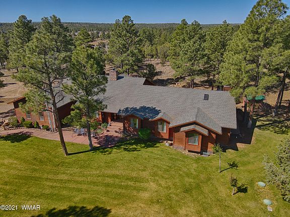 Lush green grass and the beautiful park like landscaping welcome you to the perfect family home. No HOA on 3.27 acres in Show Low is quite the find. This spacious home is the perfect spot for family gatherings and holidays. The chefs kitchen has an indoor vented grill, large island, double ovens and an oversized pantry. A pellet stove keeps this wing of the house cozy in the winter and conserves energy as well. Large double pane windows throughout the house let in plenty of light. The family/great room boasts tongue and groove aspen ceiling and accent wall as well as a wood burning fireplace. French doors open to the fully fenced yard where the natural vegetation and landscape has been preserved. The oversized bedrooms all have plenty of closet space and shelving.