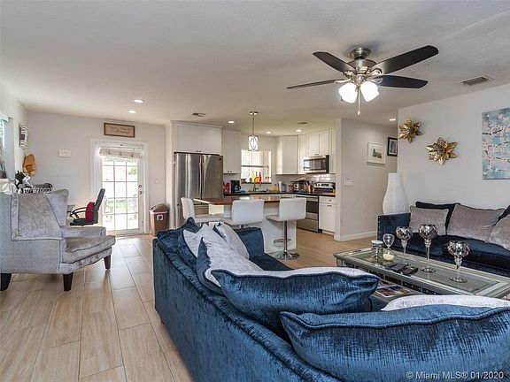 Updated home with all the modern conveniences. Ceramic modern flooring, updated kitchen with stainless steel appliances, ceramic top stove and even a natural wood topped island! There is a large indoor laundry room with a tankless gas water heater. Washer/ dryer hookup. Recently painted in modern light colors and property is fully fenced with accordion hurricane shutters. AC replaced in 2018. Plenty of parking, and large fenced lot in the back with room for a pool, space for your entertainment and relaxation or even for your pets. Easy to show, and you can moved right in. Walking distance to elementary school and close to bus route, highways and shopping. Make an appointment today!
