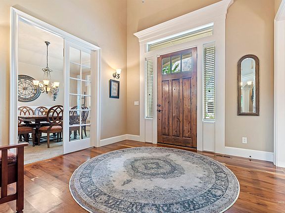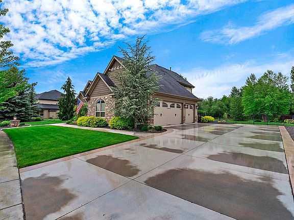 Stunningly beautiful one owner home, custom built by Shane Jayo Construction. Located on the water with walking paths and fabulous views in on of Eagles nicest subdivision, Clearcreek Crossing. Upgrades at every turn including custom Greyloch Cabinets, Granite Counters, Viking Cooktop, Oven and Warming Drawers, Bosch Dishwasher, Sub-Zero Refrigerator and Freezer Drawers & Wine Frig. Main floor Master Bedroom opens to the covered patio. Upstairs features Jack & Jill bathroom, additional bedroom & bath for 2nd Master Suite. 2X 6 exterior walls with blown inn insulation, and numerous other energy efficient upgrades make this a very energy efficient home. Main floor den/office with gas fireplace, great room and formal dining, plus a beautiful two-story great room with built in bookcases and a 2nd gas fireplace. 10’ ceilings on the main floor and 9’ ceilings upstairs. Side entry oversized three car garage plus wrought iron fencing and a custom Covertech pergola covered patio perfect for back yard entertaining.