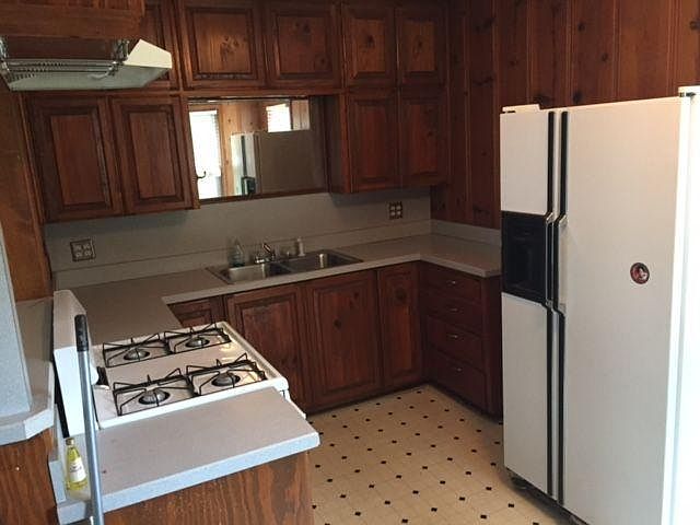 wood floors, knotty pine walls, remodeled bath , fridge, stove , alarm , covered parking, ceiling fans , central hvac, new windows, 1 walk in closet,
