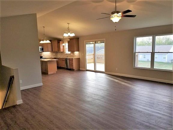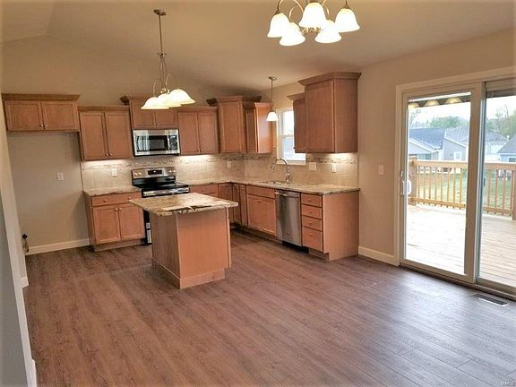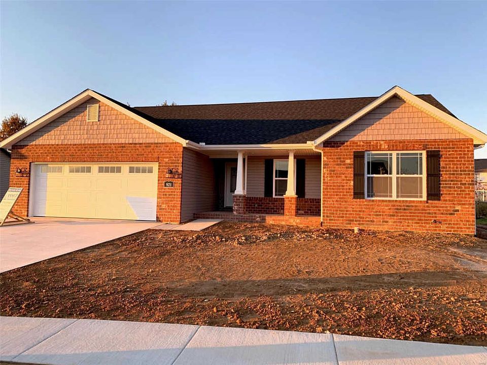 New Fieldcrest II plan, Craftsman style ranch home being built in Creekside Estates in Waterloo! No detail is being overlooked in this home, including 1700 sq ft of living space, 2 car oversized garage, open floor plan with vaulted ceilings, wood flooring, gas fireplace in corner setting with stone face and wood mantle, and much more! The kitchen features stainless appliances, premium cabinetry with crown molding & hardware, premium granite counter tops, a walk-in pantry, dining area and door leading out to the deluxe stamped concrete patio. The master suite offers a walk-in closet, tray ceiling, and master bath with dual sinks. Also on the main level you will find two more bedrooms, a guest bath, and a laundry room. ECD October 2019.Photos are samples only. Colors and finishes will vary.