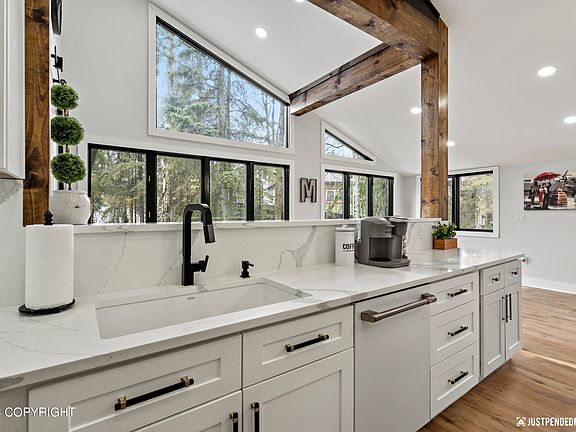 Dream kitchen and remodeled throughout to contemporary standards. . On school bus route and convenient to southside shops.Circular driveway on acre plus lot with privacy and tons of parking. Landscaped, natural garden. Rear d/way to basement with possible d/in access. Office, theater and bonus space galore.