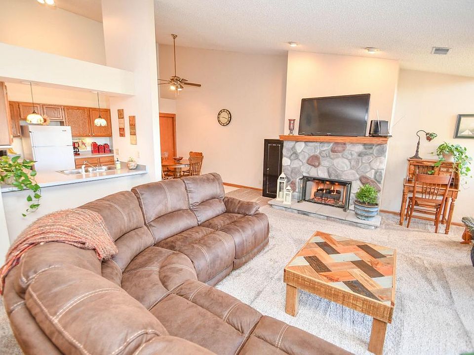 Absolutely stunning upper unit in desirable Sunset Meadows! Every inch of this condo has been lovingly maintained and updated! Great room with vaulted ceilings, doors to the balcony and beautiful stone gas fireplace. Freshly painted throughout, new carpeting throughout, new ceramic tile in the kitchen and entry, updated baths, new water heater and new roof in 2017. New windows in master bedroom, PLUS a rare 15 X 6 storage area. Utilities are never over 100 dollars! Hurry, this one will not last!
