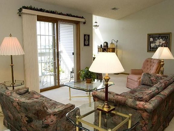 Enter this well maintained 2 bedroom 2 bath condo and be welcomed into a light and bright living room with balcony adjacent and views of beautiful conservancy. The kitchen offers newer flooring and appliances, a pantry and breakfast bar while a nook off the living room could make a great computer area. Cathedral ceilings, an open concept floor plan, plenty of storage, a one car attached garage and a superb location at Sunset Meadows make this a perfect choice to call home!