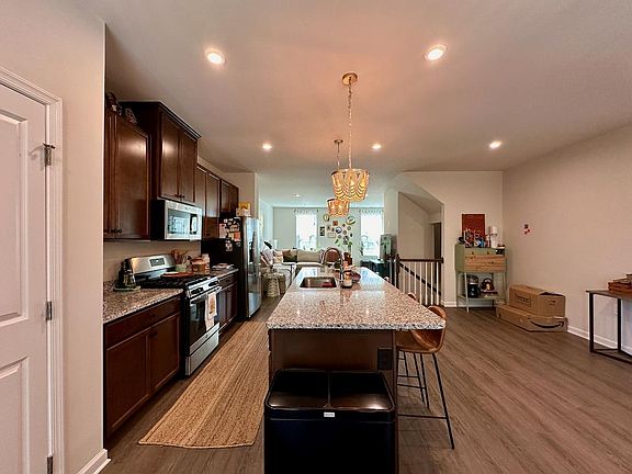 Available 12/06! Beautifully appointed 4-bedroom, 3.5-bath luxury townhome in The Townes at Courtney Creek! This nearly-new home boasts a private first-floor bedroom and bath, an open-concept second floor with a spacious living area, and a gourmet kitchen featuring a large center island with breakfast bar, stunning granite countertops, stainless steel appliances, and ample cabinet space. The expansive primary suite offers tray ceilings and a luxurious ensuite bath with dual vanities, a soaking tub, and a separate shower. Enjoy outdoor living on the relaxing back deck overlooking a fenced-in yard. The home showcases elegant luxury vinyl flooring throughout the main living areas, with plush carpeting in the bedrooms. Additional highlights include a one-car garage and access to community amenities such as a dog park, sand volleyball court, and walking trails. Perfectly located just minutes from shopping, dining, RTP, RDU, Umstead Park, and major highways!