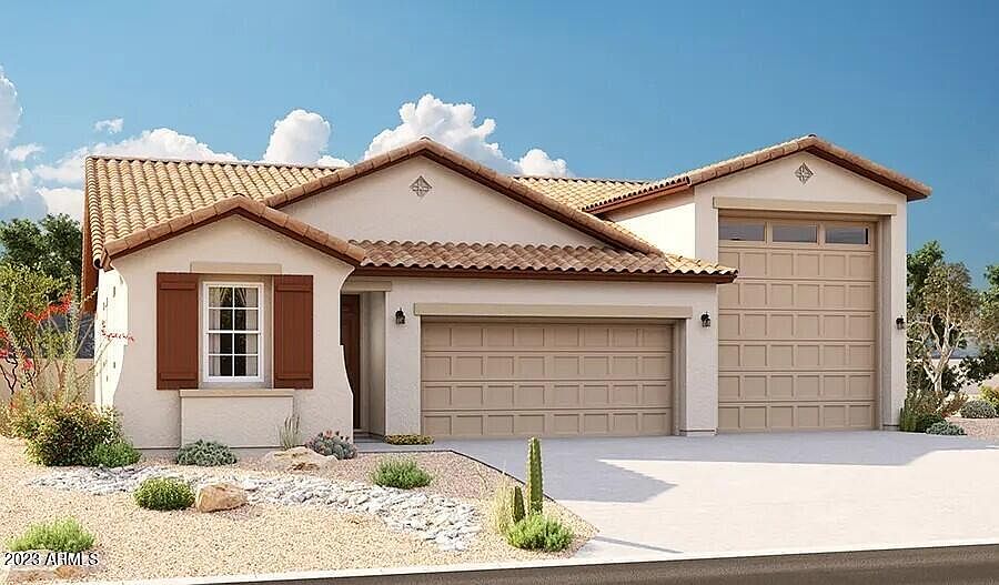 of the home is just as attractive, and centers around an open layout with a great room with center meet doors leading to the covered patio, a dining area and a kitchen with a center island and a large walk-in-pantry. This home has several upgraded features such as a beautiful Quartz Island in the kitchen and gorgeous tile flooring in the high traffic areas of the home. Off the great room, the owner's suite showcases a walk-in-closet and a private bath. Two additional bedrooms and a bath round out the residence. Make this dream home your own.