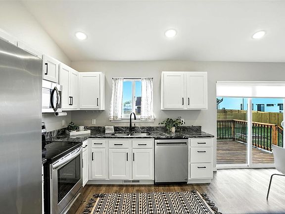 This beautifully designed 4-bedroom, 3-bath ranch-style home, built in 2021, offers modern comfort and functional living in a desirable layout. The main level features luxury vinyl plank flooring throughout the open-concept kitchen, dining, and living areas. The kitchen showcases white painted cabinets, black fixtures, quartz countertops, and flows seamlessly to the dining area with access to a 10x10 deck, great for relaxing or entertaining. The bright living room features a vaulted ceiling that enhances the spacious feel. The main floor also includes a convenient laundry room off the 2-car attached garage. 3 bedrooms and full bathroom on the main level. Primary suite with private bathroom and dual vanities. The full finished basement offers a large family room, 4th bedroom, full bathroom, and a generous storage room. Enjoy the excellent backyard space for outdoor fun or gatherings. With a thoughtful layout, and move-in ready condition, this home checks all the boxes!