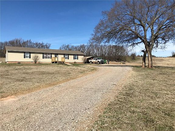 So Roomy! This four bed, 2 bath home on 7 acres checks all the boxes! Open floor plan hosts vaulted ceiling and open Country Kitchen/ Living area with extra Dining room with *NEW* flooring throughout, and *NEW*window treatments. All bedrooms have walk in closets and plenty of play space with a split plan and extra wide hall way. Great layout, including a big laundry room, huge master bath and closet, and lots of cabinets and storage space! *NEW* storm shelter installed *NEW* HVAC, and carport with a great out building and plenty of room to do whatever you can dream up outside City limits! Check out the refurbished antique bathroom cabinet with blue glass double sinks! I love the deep sea decor of the main bathroom, with glow in the dark waves! Fun!! Listing Realtor is related to sellers