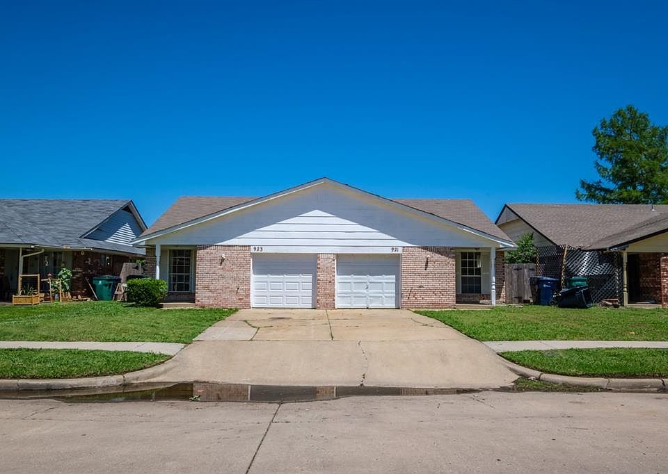 Located right behind Sky Ranch Elementary School this duplex is right in the middle of all the action. Each unit has a total of 2 bedrooms, 2 baths & single car garage. 996FT² each. Great investment potential! With a large living area and separate dining space. Kitchen has modest cabinet space. Sliding exterior doors. One bath has a shower/tub & second bath with walk in shower. New water heater & garage door on #923. Cleveland County. School distract - Moore Sd/Okc. Within a walking distance from groceries, dining, fuel, & medical facilities. Less than 1½ from I-244 & 3 miles from I-44. 6 miles to Will Rogers Airport. OG&E - Electric. ONG - Natural gas. City of Oklahoma - Water, Sewer, & Trash. Being sold as-is. Broker/Owner.