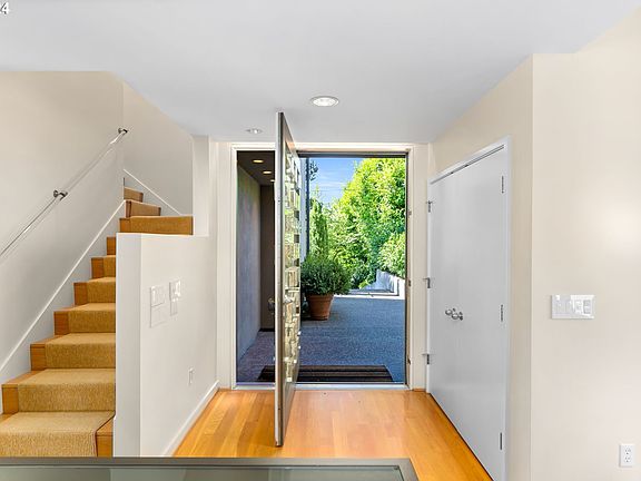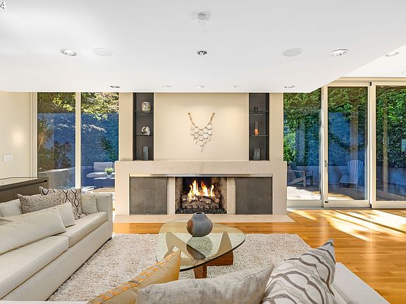 Welcome to your own peaceful oasis in Portland Heights—a hidden gem on one of the city’s most beautiful streets. This home has that rare blend of sleek, contemporary design paired with a deep connection to nature, thanks to renowned architect Rick Potestio’s thoughtful renovation.One of my favorite features? The way the floor-to-ceiling windows bring the outside in, with ivy-covered walls creating the perfect natural backdrop—almost like living accent walls. The main living area opens up seamlessly to the deck, where you can spend half the year relaxing, dining, and soaking in the views of Mt. Hood, the Cascades, and the Willamette River. It’s honestly hard to get enough of those sunrises!Inside, the custom details shine—an expansive marble fireplace, glass-shelved niches for your favorite art, and that 5,000-pound hinged glass front door that makes quite an impression. Every corner of this home feels intentional, from the hidden solar shades to the recessed lighting that creates a perfectly balanced ambiance.The neighborhood? It’s a true secret enclave—quiet, peaceful, and full of friendly neighbors who take pride in their homes. You’ve got kids walking to Ainsworth, neighbors and their families strolling the streets, and you’re minutes from NW 23rd, the Pearl, and the amazing trails and parks of the west hills. This home is not just a place to live; it’s a retreat, a space to breathe, and a perfect spot to enjoy all the best that SW Portland has to offer. [Home Energy Score = 3. HES Report at https://rpt.greenbuildingregistry.com/hes/OR10111218]