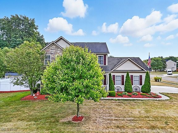 Gorgeous and immaculate 4-bedroom, 2.5-bath Colonial offering an open and airy floor plan with fantastic outdoor living space. Enjoy summer fun in the above-ground heated pool, relax on the stamped concrete patio with fire pit, and take advantage of the fully fenced yard and oversized 12x12 shed with loft and electric. Inside, the spacious kitchen features abundant cabinetry stove, a refrigerator, a disposal, a microwave, hardwood floors, and a large dining area. The first-floor laundry comes complete with a washer and dryer, while the owner's suite showcases a beautifully remodeled bathroom.