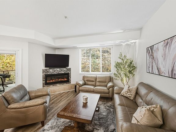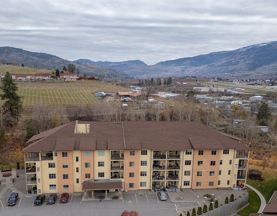 This beautiful south-facing corner unit offers exceptional privacy with hillside and vineyard views, creating a peaceful retreat right at home. Ideally located, it sits just steps from the rec center, scenic hike and bike paths, and the river, providing both convenience and enjoyment. Inside, the home is move-in ready with a series of thoughtful updates, including a new heat pump, fireplace, light fixtures, phantom screen, vinyl flooring, primary closet organizer, and new appliances. The open floor plan is bright and airy, featuring plenty of windows that flood the space with natural light. The large primary bedroom includes a spacious closet and a 4-piece ensuite, while the modern kitchen offers abundant counter and cupboard space, complete with a generous island perfect for bar stools and effortless entertaining. The unit includes two well-designed bathrooms—The main bathroom with a walk-in shower and the primary ensuite with a full bathtub—giving you the best combination of comfort and functionality. A spacious laundry room provides additional storage, and there is even more storage within the unit plus a separate secure storage locker. The complex itself is rich in amenities, offering a library, gym, workshop, conference room, games room, sitting areas, secure entry, and underground parking. With no age restrictions and pet- and rental-friendly policies, this home offers flexibility, comfort, and a fantastic lifestyle in a highly desirable location.