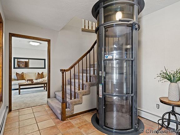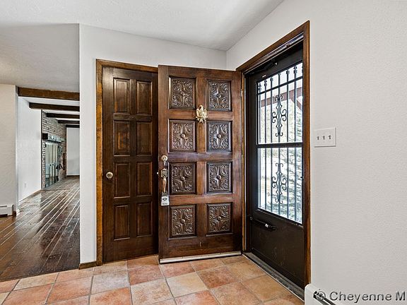 Elegance and high standards prevail in this updated, two-story Tudor Home that is quietly tucked away in Western Hills Subdivision. Perfectly situated at the corner of Hawthorne and Vandehei on a gracious 18,689 square foot lot. Distinctive brick/decorative half-timbered exterior with a large covered front porch. Modern updates throughout are tastefully balanced with old world charm. Five+ bedrooms, 4 bathroom, and 3-car attached garage with a fully finished basement with two basement staircases. Two custom stained-glass windows adorn the front of the home. Gourmet kitchen with granite countertops, center island, walk-in pantry and cabinet storage galore. Wide plank hardwood floors with antique nail heads bring the coziness of old world charm into the home. The main level great room/pub room features a wet bar and a massive brick wood-burning fireplace with an extra-large hearth and a separate wood-burning pizza oven designed to accommodate gatherings with loved ones. You'll also find robust, exposed beams of wood adorning the great room ceiling. All three levels of this home can be conveniently accessed via the elevator and staircases. The second story has five bedrooms, a study, laundry room and walk-in attic storage over the garage. There is also central air conditioning on the second floor. The finished basement has two large family rooms/multipurpose rooms, a standalone wood stove, a library/home office with built-in shelves, a guest bedroom and a large workshop/store room with a separate sink. The heated sun room has skylights and overlooks a park-like back yard. Two oversized patios for entertaining and enjoying the hot tub. This home boasts of beautiful landscapes and charming architecture. Fine craftsmanship is evident throughout. Truly a Wyoming gem of a home!!!