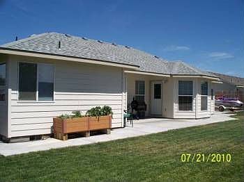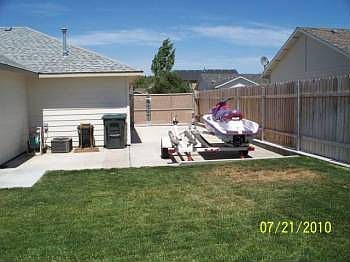 Custom built by Dick Maxwell for present owner. Gable hip roof design with comp. roof. Owner added RV parking (8' conc. pad) behind gate. Concret was extended from RV pad to all around home. Partially covered patio, fenced yard, timed underground sprinklers and much more!