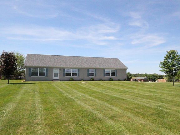Spacious 3 bdrm split ranch on 1.6 AC lot. Larger than appears! 2108 SF living space incl great rm,large kit & breakfast rm,2 dining rms or study. Upgraded wood laminate flrs. Rear deck. 30x56 detached garage w/electric,36x29 space w/concrete flr, 20x30 w/gravel flr & unfinished 36x30 space on 2nd flr-possible rec rm/workshop. Must see in person!