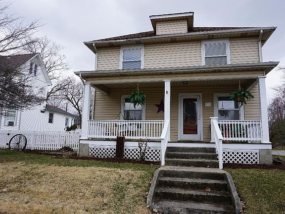 Very well maintained large home that has been beautifully kept to capture the old homes original beauty. Original wood floors throughout most the home with dark stained trim. Homes has 3 large rooms in the main living area along with a nice size kitchen and bedrooms with walk in closets. Home offers a lovely covered porch with a white vinyl picket fence sitting on a corner lot with a nice size detached garage. Updates include newer windows with a five year old central air.