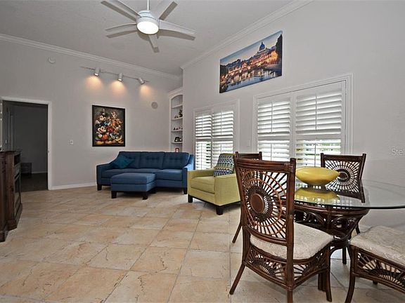 First Floor Pristine MOVE-IN Ready Condo is Light & Bright with 2 sets of French Doors to the Patio. Plantation Shutters in every Room. Kitchen has Corian Counter tops, 42" Staggered Cabinets with accent lighting above and under cabinets plus pull out base shelving. Eating Space in the Kitchen plus Breakfast Bar. Laundry Room adjacent to kitchen has full size Washer/Dryer plus Storage Cabinets. Living/Dining Room Combination with Built-in shelves & indirect lighting, Tile Flooring, Crown Molding plus Plantation shutters throughout. Master Bedroom has Tray Ceiling, Plank wood flooring, XL Walk-in Custom Closet, Master Bath with Dual Sinks and Walk-in Shower. Guest Bedroom has Built-in desk area in closet plus Second full bath with tub shower combination. Upgrades include: Intercom System, Tankless Water Heater, Light fixtures & fans. Covered Parking with an adjacent storage room makes this an exceptional value. Located near walking/biking trails and blocks to Spring Park Heated Pool and Playground.