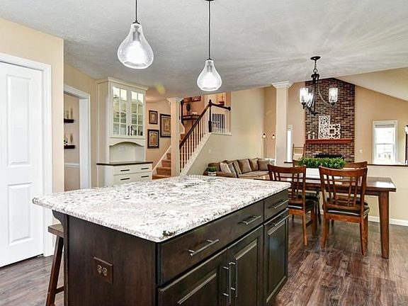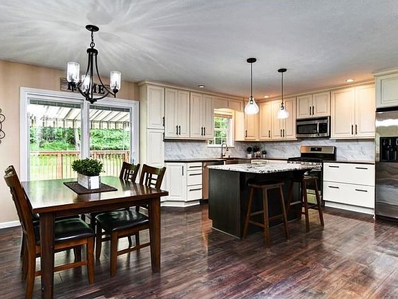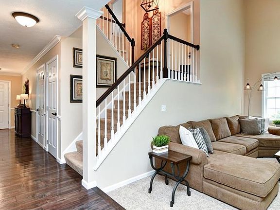 NEW roof! NEW kitchen! NEW flooring! NEW lighting! NEW hardware! Rarely available floor plan in popular Adams Ridge! OPEN and VERY SPACIOUS with turned staircase located in the center of the home, with laundry and study located at each landing. The step-down family room is open to the luxurious new kitchen, AND vaulted with 2 skylights (built-in blinds). Beautiful "luxury vinyl wide plan" floors lead seamlessly from the front door to the GORGEOUS KITCHEN! Lovely master suite with walk-in closet and beautiful bath (jet spray garden tub + glass door shower + more!) Maintenance-free, low deck which is partially covered by awning. Level concrete driveway is extended. Huge unfinished basement ready for your personal needs/touch! Convenient to luxurious community clubhouse, pools, tennis court, playground and more! Smaller lot which backs to woods gives you more time for travel and fun; less yardwork! 1 year home warranty included.