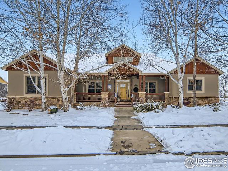 Welcome Home! As you enter you will immediately see the pride of ownership and the beautiful craftsmanship of the builder. You will enjoy the open floor plan, covered front porch and rear patio. The kitchen is a chef's dream with upgraded appliances, gas range, granite tops and Backsplash, kitchen island, breakfast bar, hardwood floors, raised alder cabinets and breakfast nook. Many upgrades including vaulted ceilings, art niches, ceramic tile work, oversized 3 car garage, luxury primary bath and so much more. This 3-bedroom ranch style home has over 2000 sq feet of unfinished basement space for you to expand into. Unpotable water is provided by the HOA for irrigation of entire lawn. Just 5 minutes away from the TPC golf course or downtown Berthoud. The home sites on a corner lot next to open space. This is truly a must see!