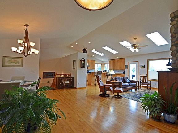 Stunning 3700sqft home on 5 acre lot. Home offers 4 beds + office. On main flr you'll find 3 beds including master w/large bath & walk-in closet. Hardwood flrs, vaulted ceiling & gas fireplace. Downstairs has a guest bed w/ensuite bath (second master), office, family rm, 2nd kitchen, gas fireplace, & a wine cellar. This property is an equestrian dream w/4-stall stable, wash stall, heated tack rm & space for storage. 120x80ft arena & 5 acres for riding. Centennial Trail a hop, skip & a jump away.