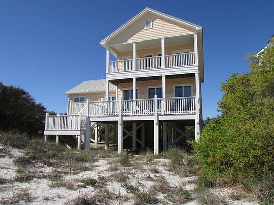 9210 Dacus Lane, GS 4/4 - $549,000 Fab, spacious beach house high on a dune overlooking the gulf. Gorgeous views from all rooms but one. Tile everywhere except bedrooms & stairs. Huge kitchen. 2 covered decks & one open. 2 lots- L shaped with direct access to gulf. Smooth 10 ceilings downstairs & 9 upstairs with crown molding. 2 AC units, master has lg bath w/tub & shower! Cute furnishings!