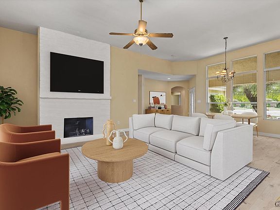 Welcome to an exquisite residence nestled in the coveted neighborhood of The Gardens. This impeccably maintained home boasts 3 bedrooms and 2 bathrooms, adorned with updated wood-like flooring and elegant tile throughout. Freshly painted interiors create an inviting ambiance, while the expansive lot provides an enchanting outdoor sanctuary for leisure and entertainment. The open-concept living, dining, and breakfast areas seamlessly blend together, offering an ideal setting for gatherings. The kitchen is a culinary masterpiece, featuring charming granite countertops and a captivating wood butcher block island. A beautifully crafted fireplace serves as the focal point, accompanied by modern stone work. Additional highlights include an indoor laundry room and a grand covered patio that beckons you to unwind. Delight in the backyard oasis adorned with fruit trees and vibrant blooms. Seize this remarkable opportunity to embrace a lifestyle of comfort, sophistication, and natural beauty!