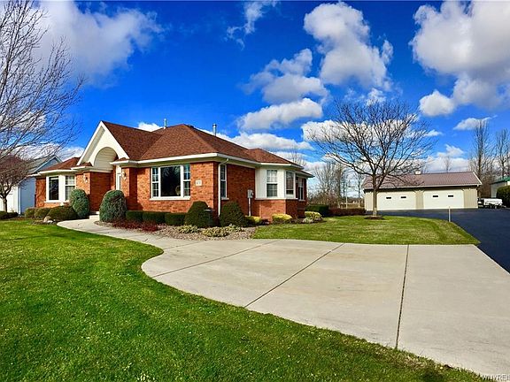 Gorgeous Custom Built Clarence Ranch with fabulous curb appeal and Brick exterior on all four sides. Meticulously maintained by Original Owners. Large foyer welcomes you to this bright spacious home. Huge kitchen with large island, beautiful cabinetry and solid surface counters. Tray ceiling and fireplace in formal living room. Family room boasts wood stove and soaring ceiling. Three spacious bedrooms on first level and two full baths (one off master). Basement offers one full bathroom and significant additional living space. Egress windows provide the benefit of plenty of daylight. Home is situated on a huge beautiful lot. Rear stamped concrete patio offers a beautiful view with no rear neighbors. Massive heated garage holds four cars and more. This home is not to be missed!