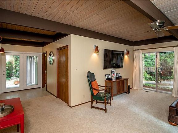Mid-Century Modern!!! Clean open lines, plenty of room for entertaining. Shimmering Terrazzo floors. Bosh appliances in kitchen. Versatile floor plan. Grand windows and glass doors let in refreshing natural light and welcome you to relaxing patio. Wooden ceilings and beams throughout home add to the contemporary vibe of this one of a kind home. Great location with easy access and design that will wow! Call today for your private showing!!