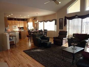 92104 E. Sagebrush, Kennewick - Dir: Reata Rd, L-Bermuda, R-Sagebrush. Spacious rambler daylight basement property on 1.09 acre lot with expansive teritorial views. 9ft ceilings on main level and basement. Great room open plan w/ kitchen open to the family room and full length deck w/ covered area creates additional living spaces. Large master suite with jetted tub and tile surround. Rustic maple hardwood floors, white painted millwork, maple cabinets, 400 amp elect service w/RV & welding outlets.