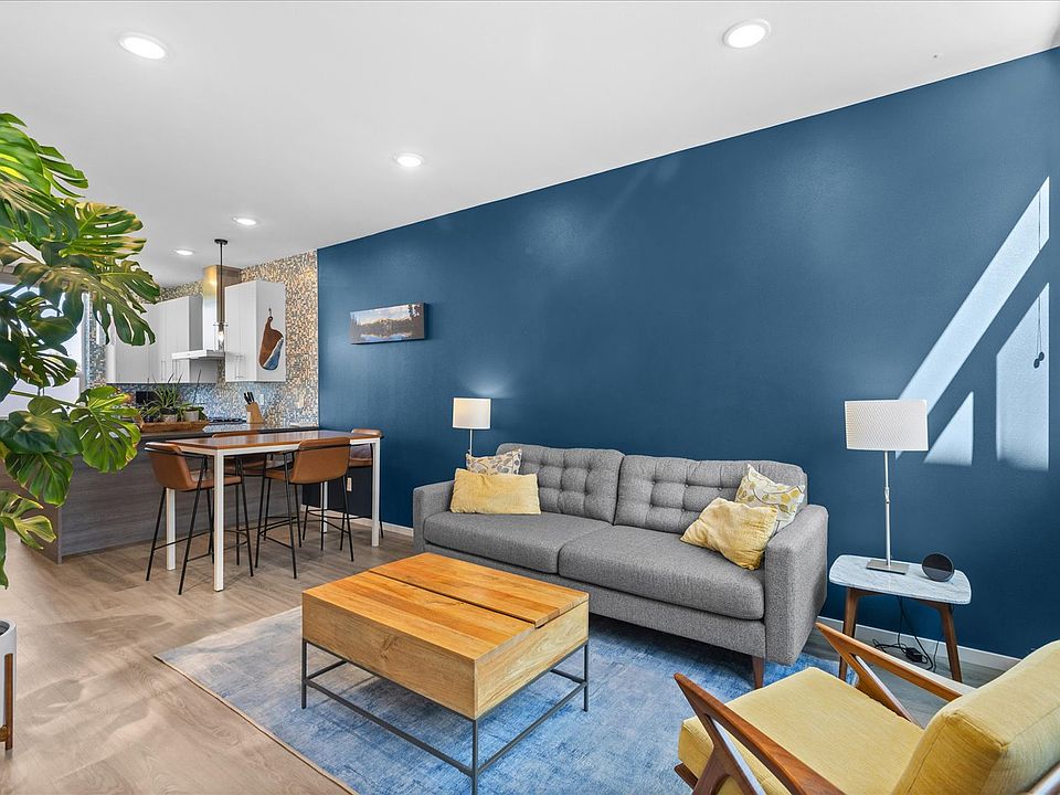 Welcome to your modern move-in ready townhome with superior finishes throughout. You'll love pulling straight into your garage equipped with a smart door opener, EV charging, and storage space. Entry level bedroom with its own full bath is perfect for guests or office. Floating staircase provides a contemporary flow and sophisticated touch. Main level offers an open floor plan, bath, and a chef's kitchen with plenty of storage, quartz counters, full height tile backsplash & high-end appliances. Spacious primary suite is one floor up with dual sinks, large shower, and walk-in closet. You'll enjoy relaxing with views of the Olympics from the rooftop deck. Centrally located to all that White Center and W. Seattle have to offer. Walk Score of 89! The property is simultaneously listed for sale and will be taken off the market if a renter is accepted. Renter responsible for all utilities