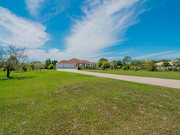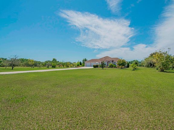 As you drive up the 200ft long driveway you are greeted to a 2003 custom home that sits on 6.05 acres of land. There is a 3 car garage for all your toys and plenty of parking for your guests. 3 bedrooms, 2 and half baths, with a den, a separate formal dining room, and breakfast nook. There is approximately a 17x30 covered screened in patio perfect for entertaining. Cathedral ceilings. Inside Utility room with a washer and dryer that will stay with the home. Outback you will find a paved patio area great for having family and friends over for a bbq. Plenty of fruit trees to name of few: guava, bananas, mangos, jack fruits, sugarcanes and the list goes on. Two storage sheds out back for your gardening tools. Two ponds at the rear of the property. Come see this home for yourself today!