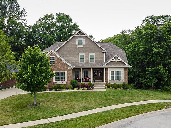 Stunning craftsman home that was custom built. Walk thru double doors to open foyer and 2 story great room, first floor master suite with barrel ceiling, bath has whirlpool, separate shower and large walk-in. Kitchen is spacious and features white cabinets with granite, island and separate bar area. Formal dining room, laundry and half bath complete this floor. Upstairs you will find 3 large bedrooms and full bath. Lower level has Family room with bar, 5th bedroom and full bath. Outside features large covered deck and patio and beautiful fire pit on a wooded rear yard. Special features include all wood floors on 1st floor and lots of built-ins and moldings.