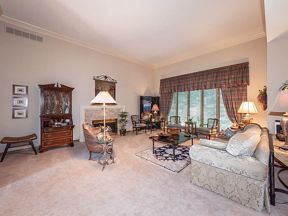 Luxurious living at an affordable price in this sensational patio home complete with a great floor plan for easy entertaining, lovely living room with crown molding, fireplace with tile surround, neutral decor, wet bar, and large windows overlooking the pond, formal and informal dining areas, beautiful granite kitchen with island, tile backsplash, cabinets with pull-out shelving, fully applianced, tile backsplash, and pantry area. The convenient main floor laundry is located right off the kitchen and features hardwood floors, cabinet space, two closets, and deep wash sink. Spend peaceful nights in this spacious master suite with carpeting, crown molding, large windows overlooking the pond, two walk-in closets and private bathroom with his and her sinks, vanity area, soaker tub, separate tile shower, linen closet, and recessed lighting. The finished basement is the perfect space to unwind and features a large family room with carpeting, recessed lighting, fireplace with brick surround, built-in bookcase, wet bar, and enough space for your favorite game table. This lower level also features two spacious bedrooms, a full bathroom, a bonus room that would be perfect for a hobby/craft room or exercise room, and a large storage room with walk-in cedar closet. Sit back and relax out on the patio overlooking the serene commons area! Truly a must see!
